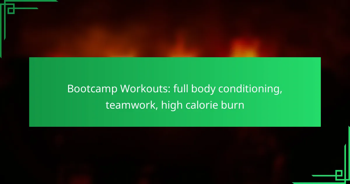 Bootcamp workouts are designed for full body conditioning, utilizing high-intensity exercises that engage multiple muscle groups to enhance strength and endurance while maximizing calorie burn. These sessions not only incorporate a blend of cardio and strength training but also promote teamwork, encouraging participants to support one another through challenging workouts. As a result, bootcamp workouts can lead to significant calorie expenditure, making them an effective choice for those looking to improve their fitness and achieve weight loss goals.