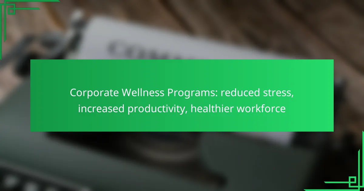 Corporate wellness programs effectively reduce stress by promoting healthier lifestyles and providing employees with tools to manage their mental well-being. These initiatives often include various activities and resources aimed at fostering a supportive work environment, which can lead to lower stress levels and improved overall productivity.